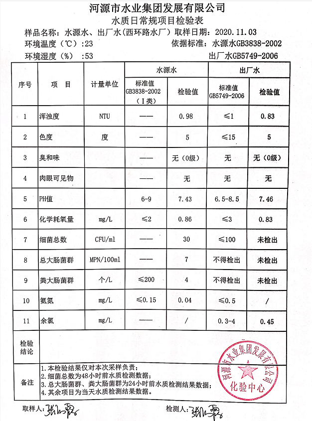 2020年11月3日水質(zhì)檢驗(yàn)報(bào)告
