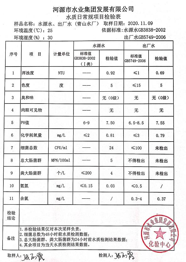 2020年11月9日水質(zhì)檢驗(yàn)報(bào)告