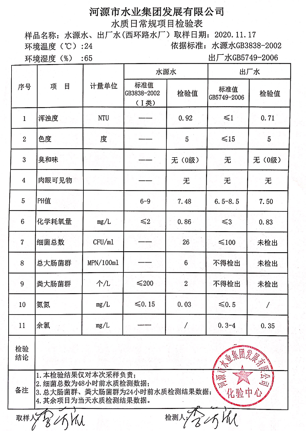 2020年11月17日水質(zhì)檢驗(yàn)報(bào)告