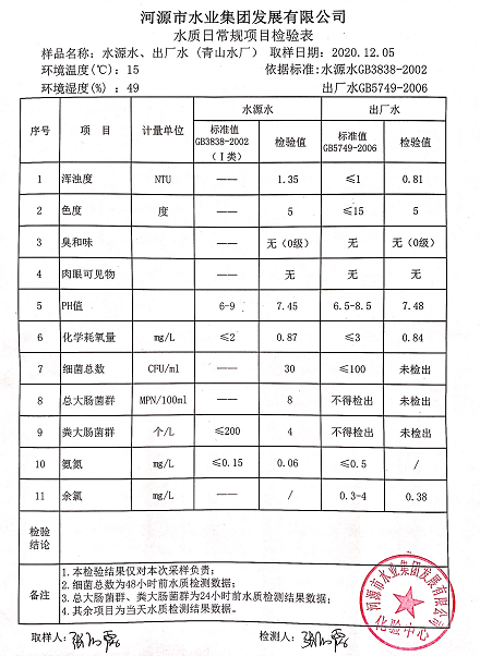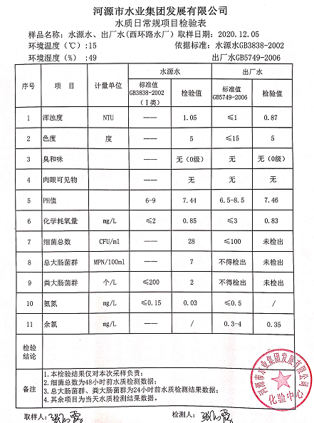 2020年12月5日水質(zhì)檢驗(yàn)報(bào)告