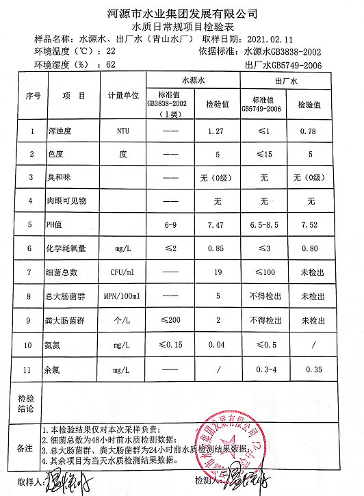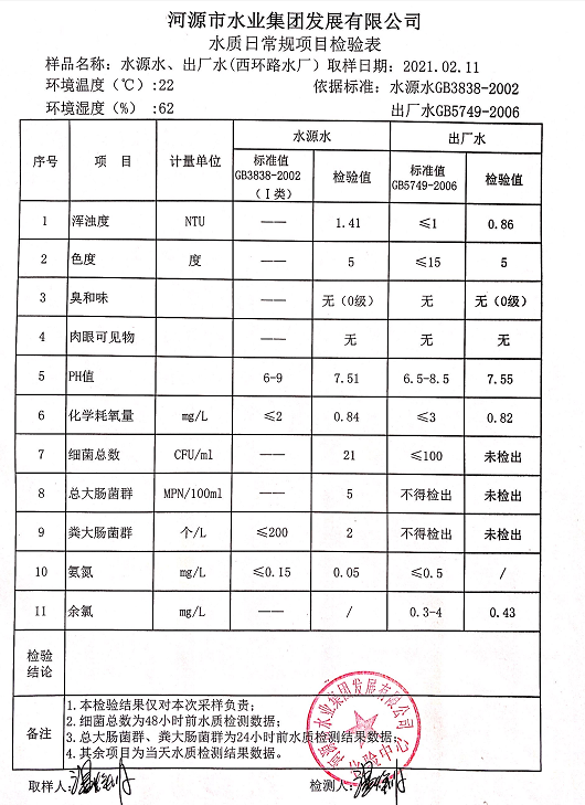 2021年2月11日水質(zhì)檢驗(yàn)報(bào)告