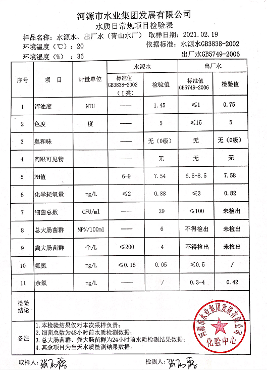 2021年2月19日水質(zhì)檢驗報告