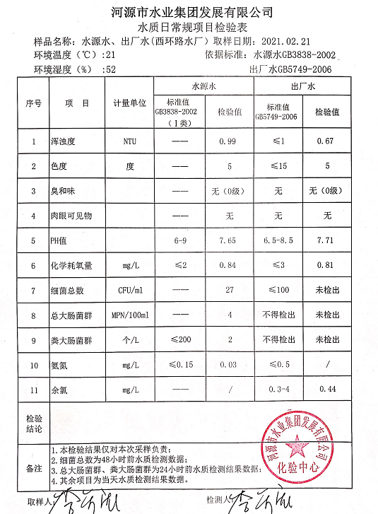 2021年2月21日水質(zhì)檢驗報告