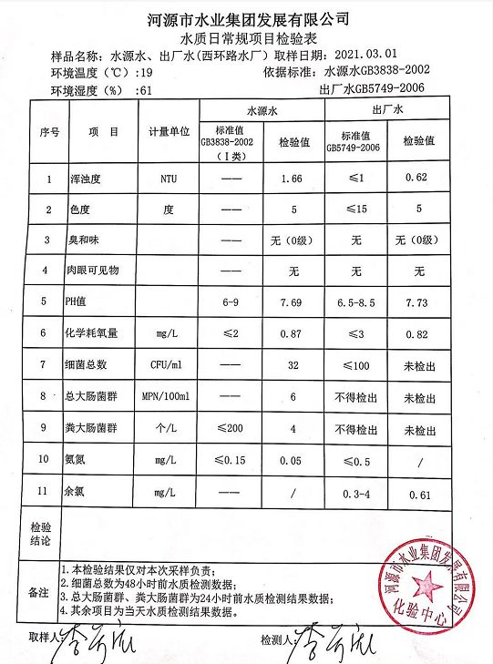 2021年3月1日水質(zhì)檢驗(yàn)報(bào)告