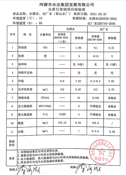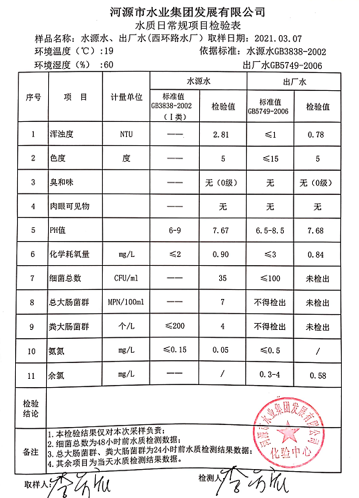 2021年3月7日水質(zhì)檢驗報告