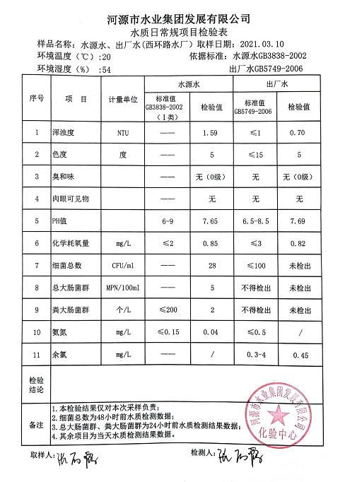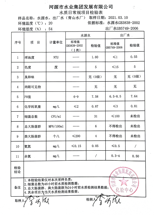 2021年3月10日水質(zhì)檢驗(yàn)報(bào)告