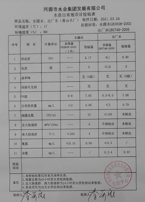 2021年3月24日水質(zhì)檢驗(yàn)報(bào)告