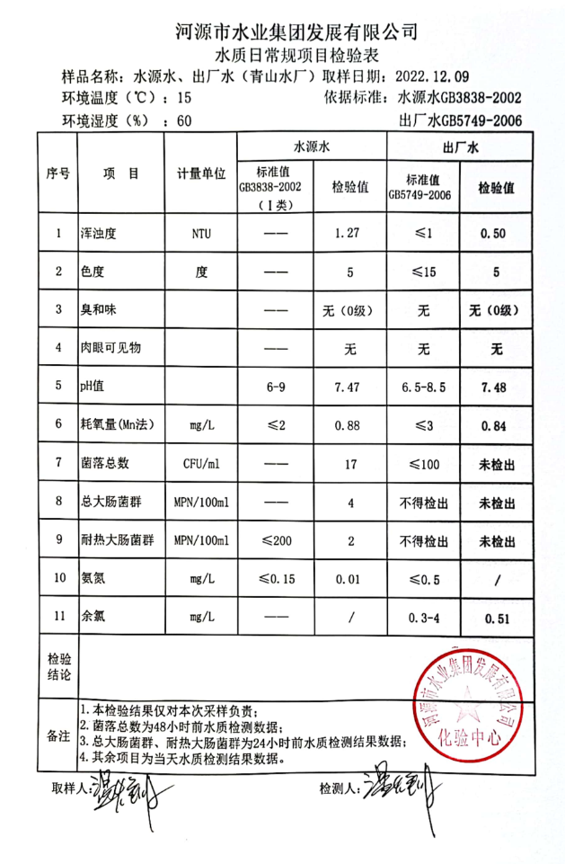 2022年12月9日水質(zhì)檢驗(yàn)報告