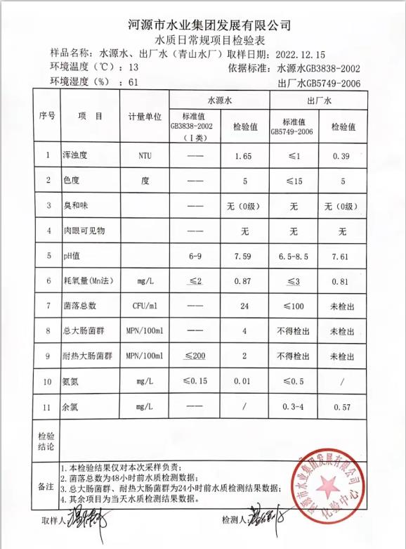 2022年12月16日水質(zhì)檢驗(yàn)報(bào)告
