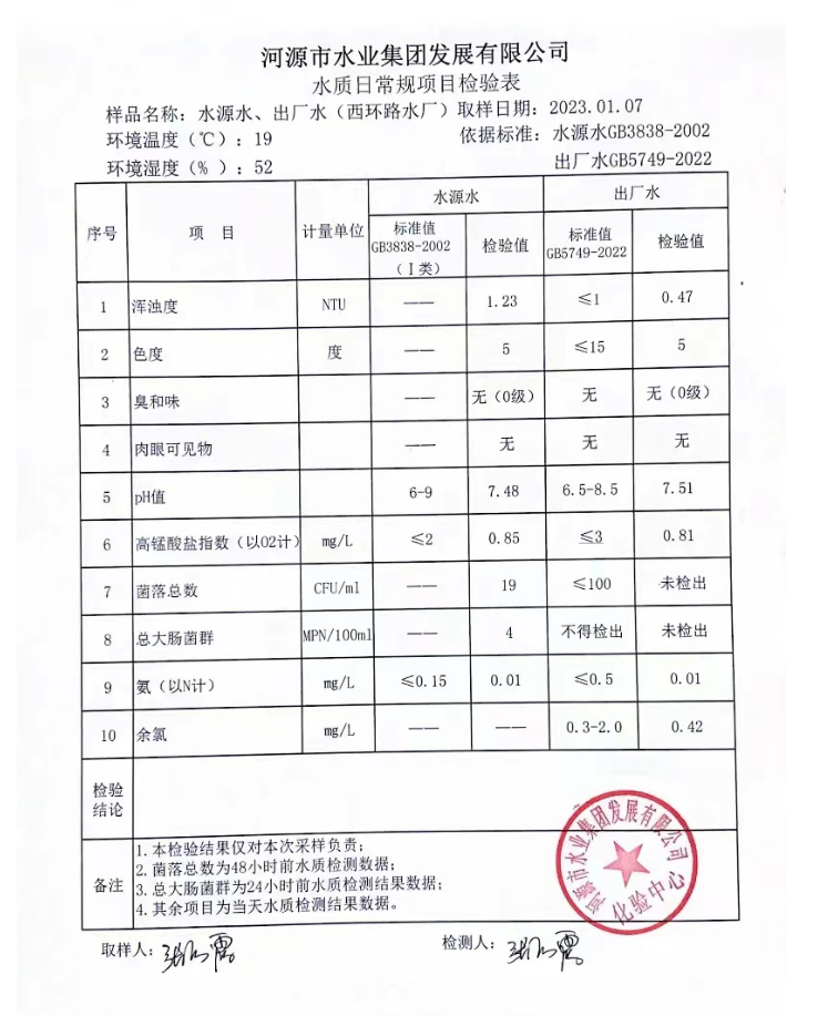 2023年1月7日水質(zhì)檢驗(yàn)報(bào)告