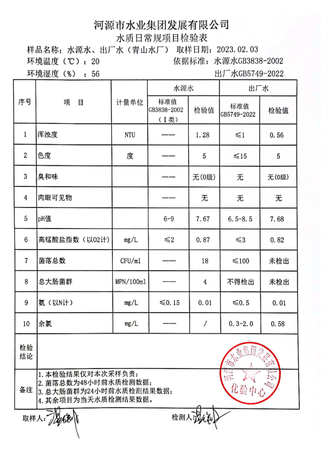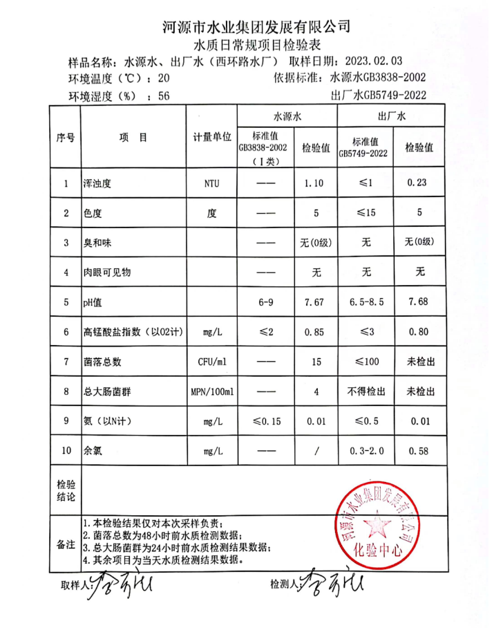 2023年2月3日水質檢驗報告