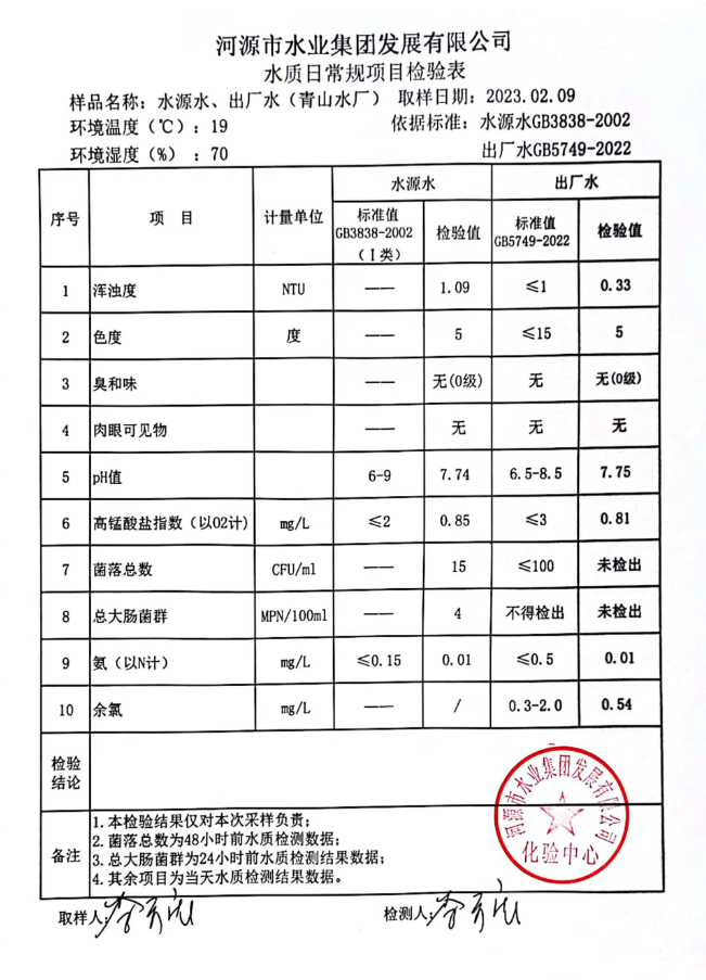 2023年2月9日水質(zhì)檢驗報告