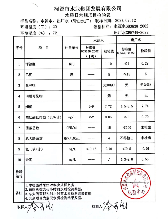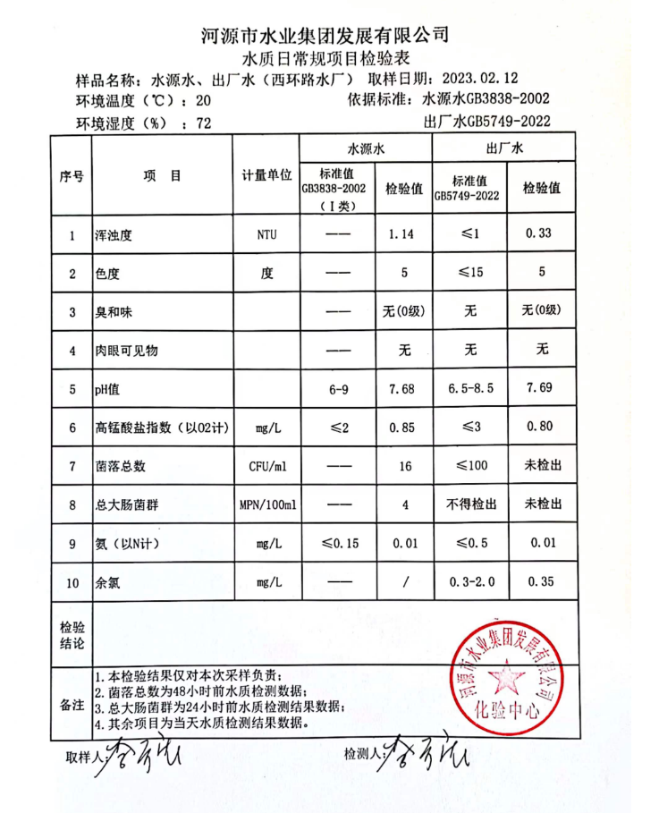 2023年2月12日水質(zhì)檢驗(yàn)報告