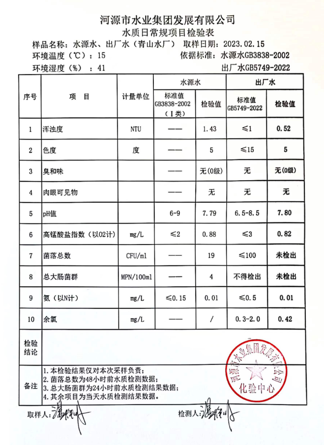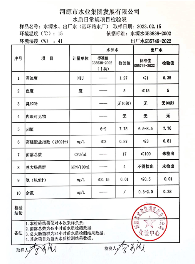 2023年2月15日水質(zhì)檢驗(yàn)報(bào)告