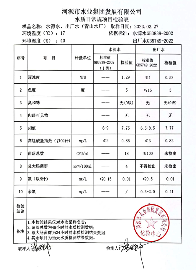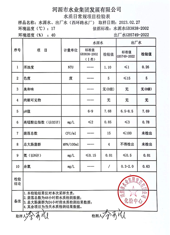 2023年2月27日水質(zhì)檢驗報告