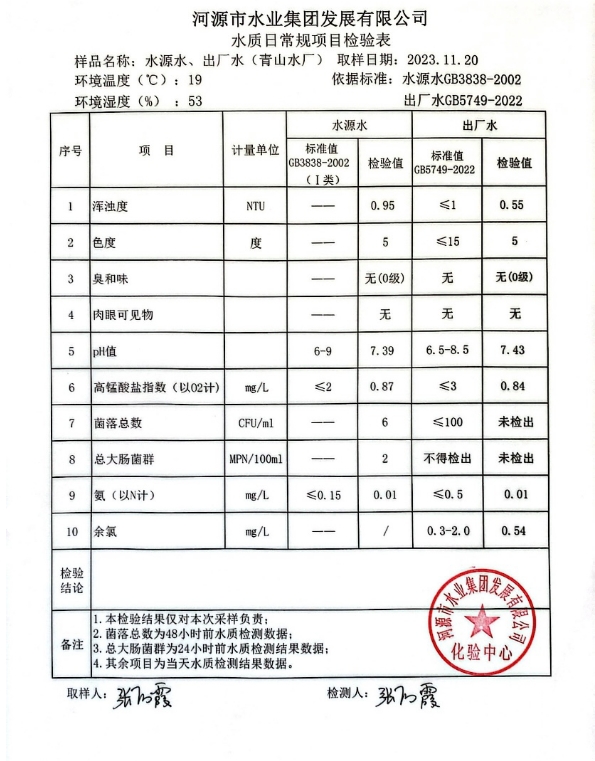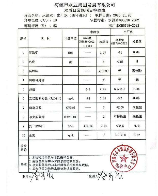 2023年11月20日水質(zhì)檢驗(yàn)報(bào)告 ???