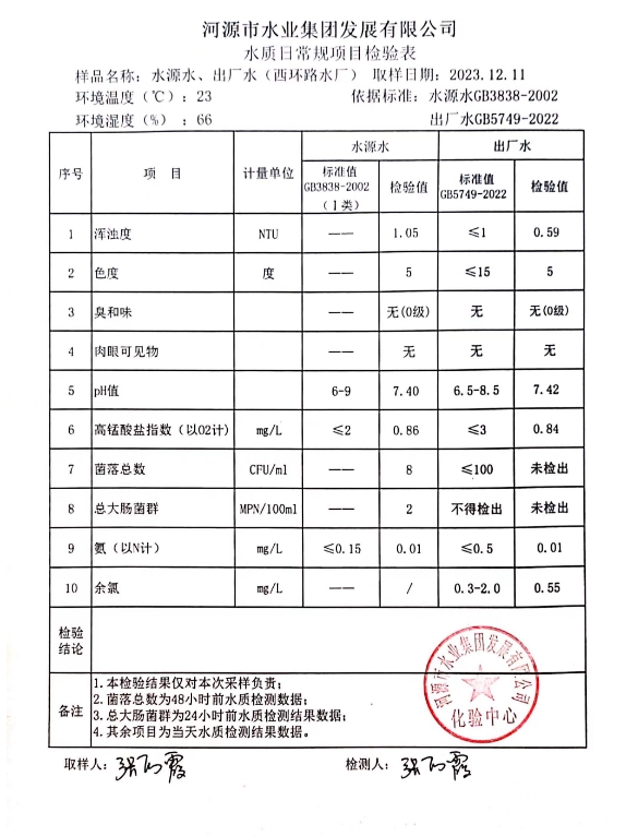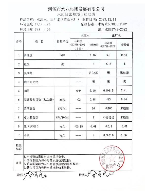 2023年12月11日水質(zhì)檢驗報告 ???