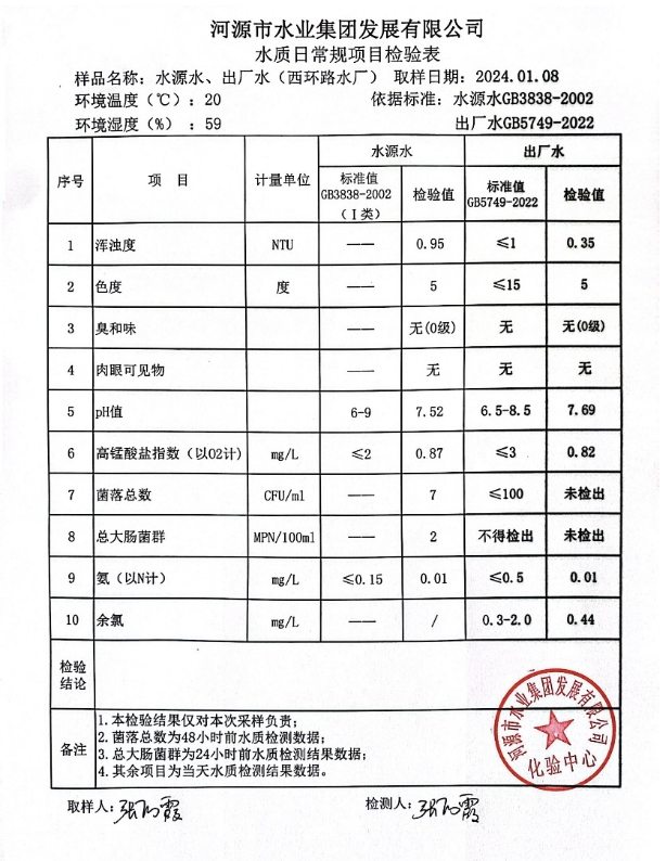 2024年1月8日水質(zhì)檢驗(yàn)報(bào)告