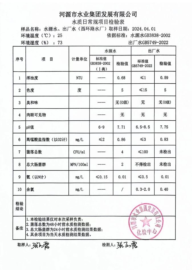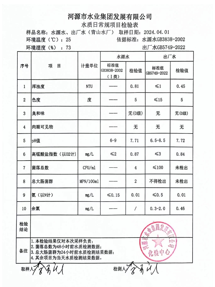 2024年4月1日水質(zhì)檢驗(yàn)報(bào)告