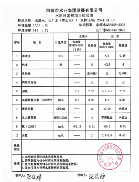2024年4月10日水質(zhì)檢驗報告