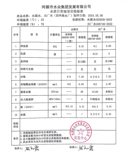 2024年5月6日水質(zhì)檢驗(yàn)報(bào)告 ???