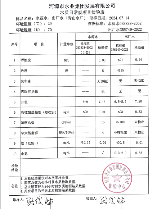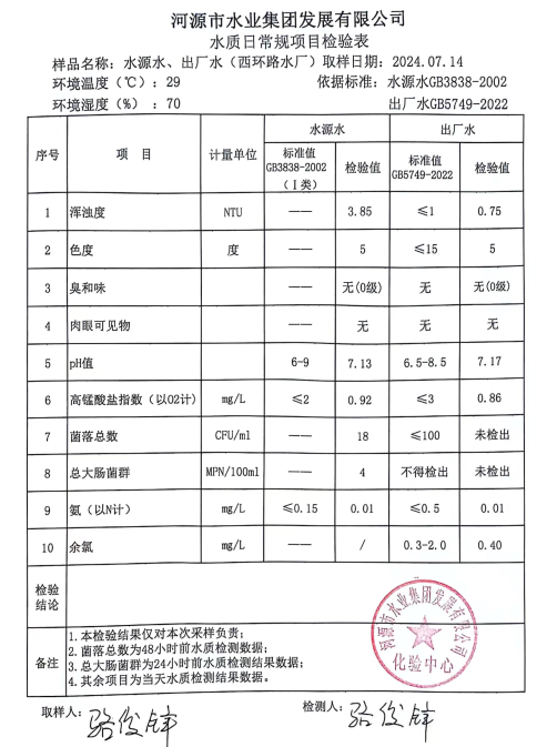 2024年7月14日水質(zhì)檢驗(yàn)報(bào)告