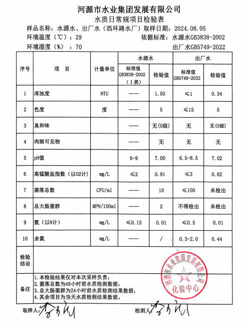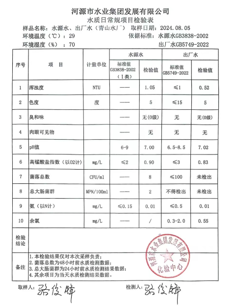 2024年8月5日水質(zhì)檢驗(yàn)報(bào)告