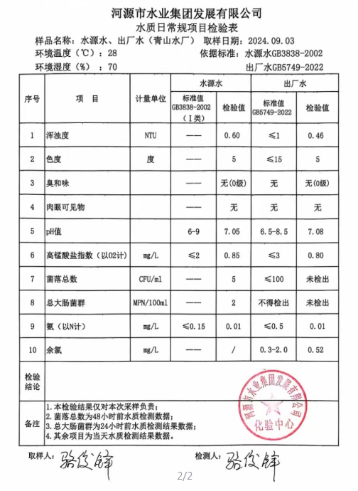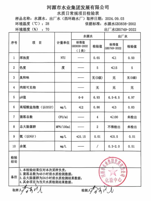 2024年9月3日水質(zhì)檢驗報告