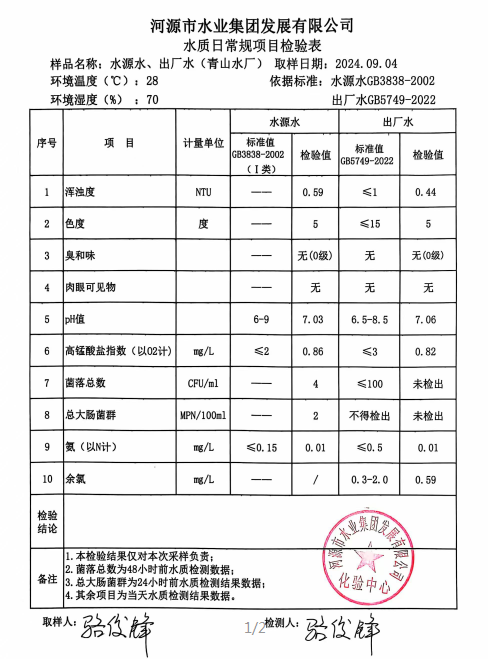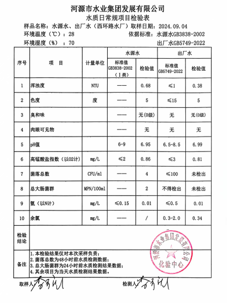 2024年9月4日水質檢驗報告